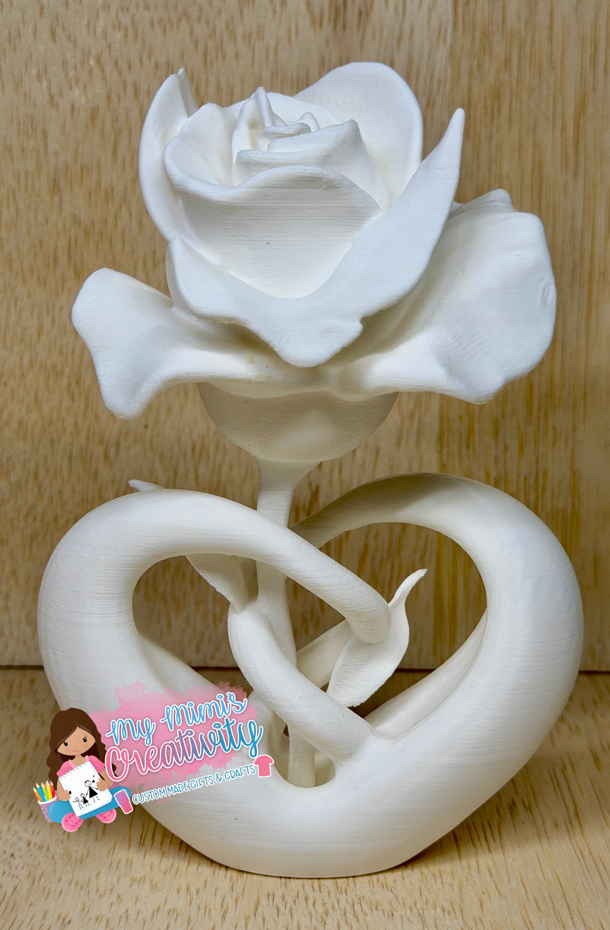 Celebrate love that lasts forever with this stunning 3D-printed Infinity Rose sculpture embellishment. Featuring a beautifully detailed rose rising from an intertwined heart-shaped infinity base, this piece symbolizes eternal love, unity, loyalty, and connection.